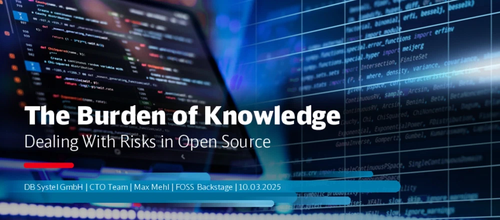At FOSS Backstage 2025 in Berlin, I explored a critical challenge facing OSPOs and development teams: as we increase analysis of our software supply chains, tools and scorecards reveal potential risks in Open Source projects like low maintenance, lack of community, or poor security practices. But this data alone doesn’t help if it merely points out potential problems without offering solutions. The question is: how should we handle this burden of knowledge? Through manual reviews? Questionnaires? Funding? Or should we look away?